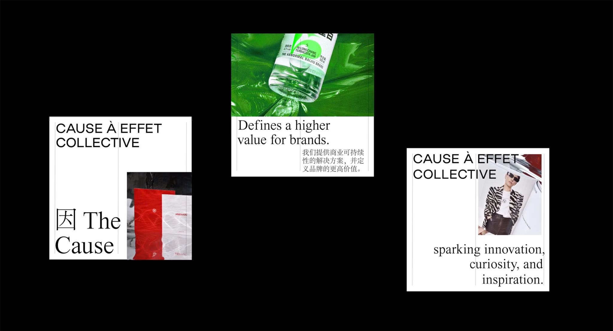 I was asked to develop a minimalist motion identity for CAE, a newly founded French–Chinese creative collective. The objective was to present their work and values through refined, fluid motion that complements and enhances their packaging design. In addition, I designed the logo animation, in which the letterforms gradually align and settle into place, visually expressing how CAE’s work brings clarity and simplicity to complex businesses.